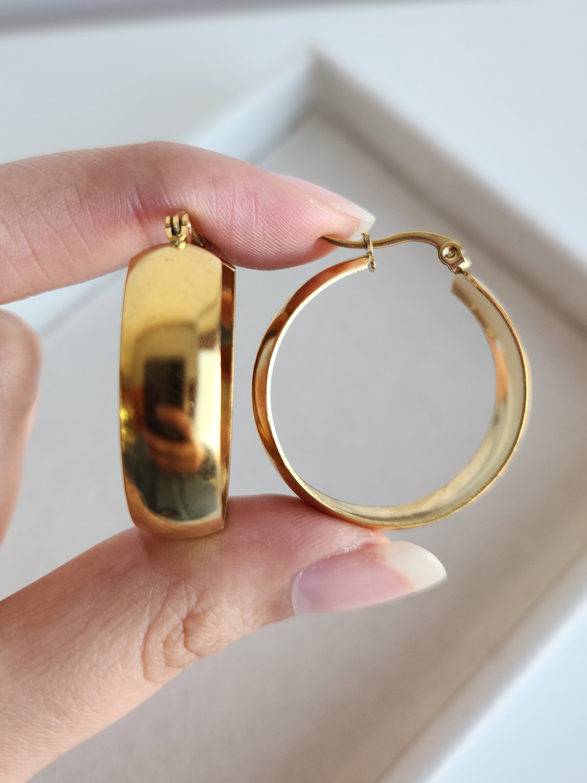 el equilibrio perfecto entre volumen y elegancia. Con un diámetro de 3 cm y un perfil grueso y tubular, estas argollas están diseñadas para ser las protagonistas de tu outfit, aportando un aire moderno, audaz y sofisticado.