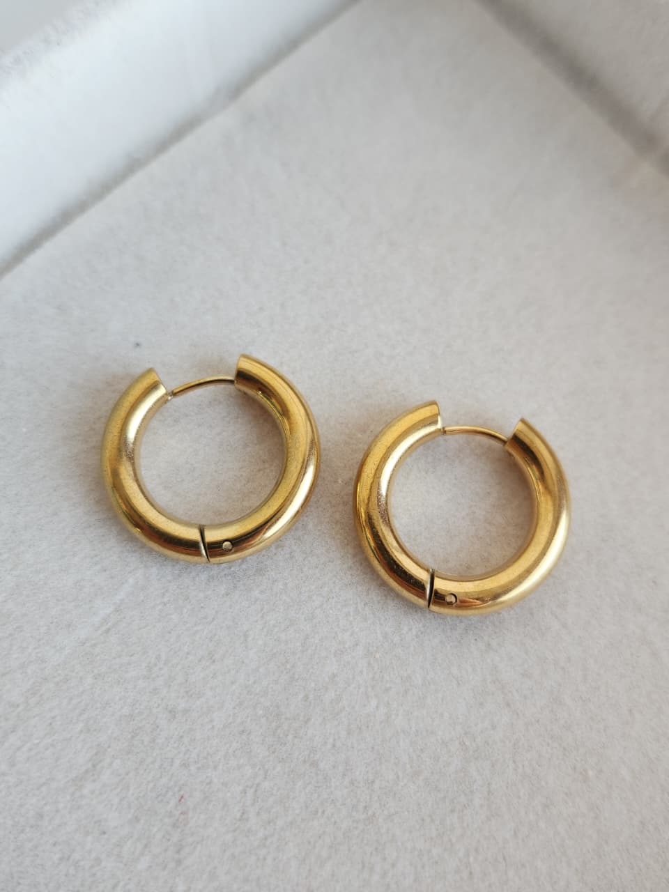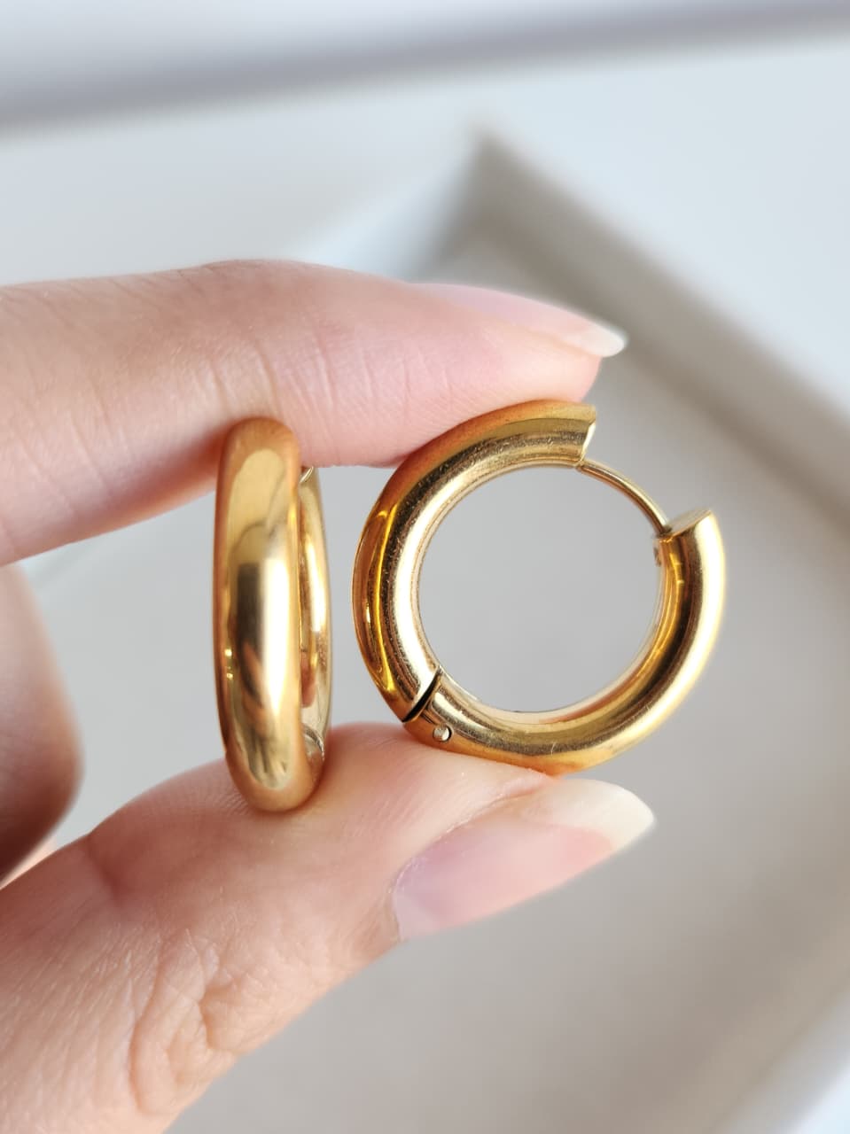 Este es el tamaño imprescindible. Las argollas de 1.9 cm son las famosas "everyday hoops": ese accesorio que no te sacás nunca porque queda bien con el pijama, con el uniforme del trabajo o con un vestido de fiesta. Al ser chunky, tienen el volumen justo para no pasar desapercibidas.