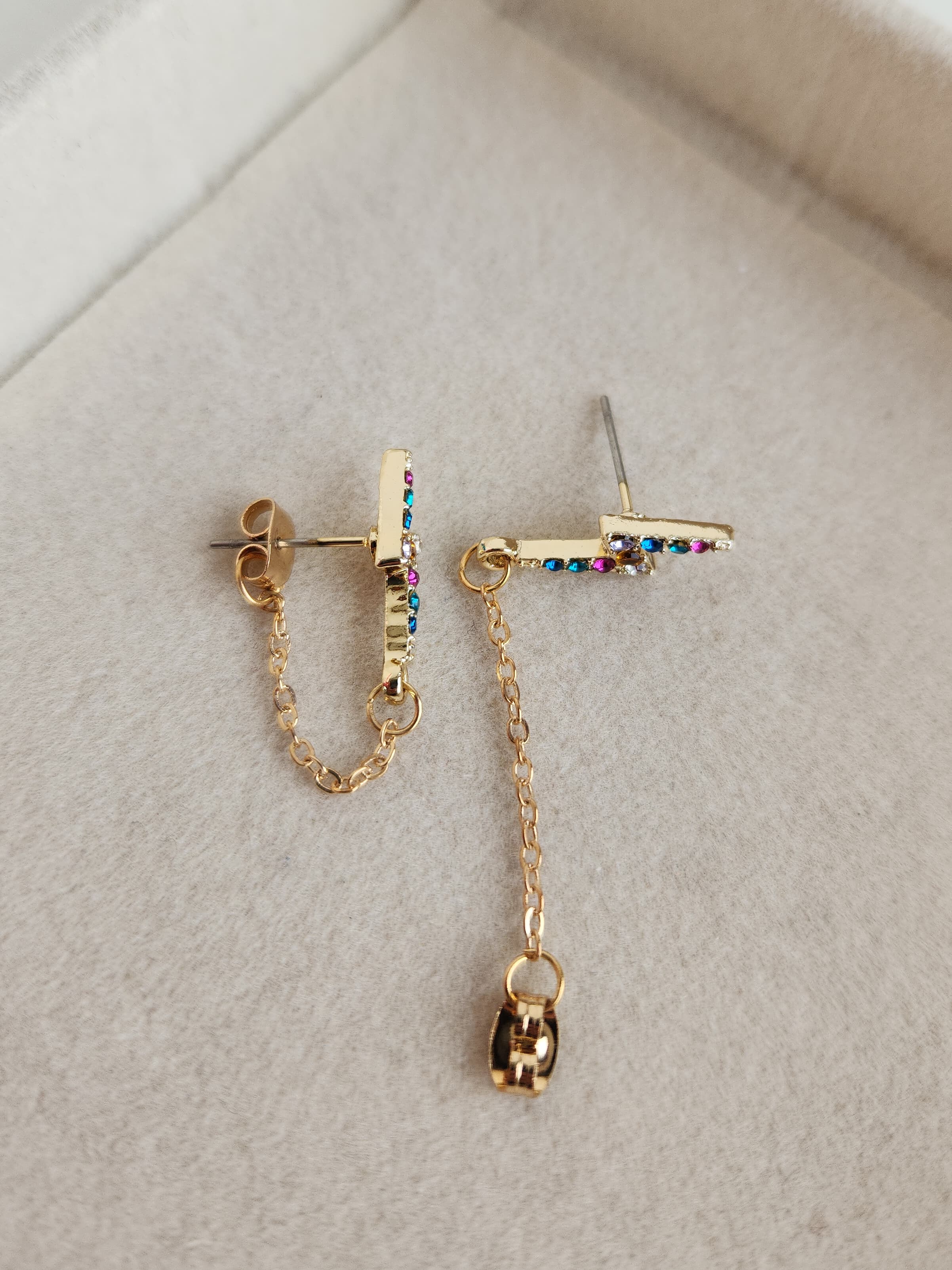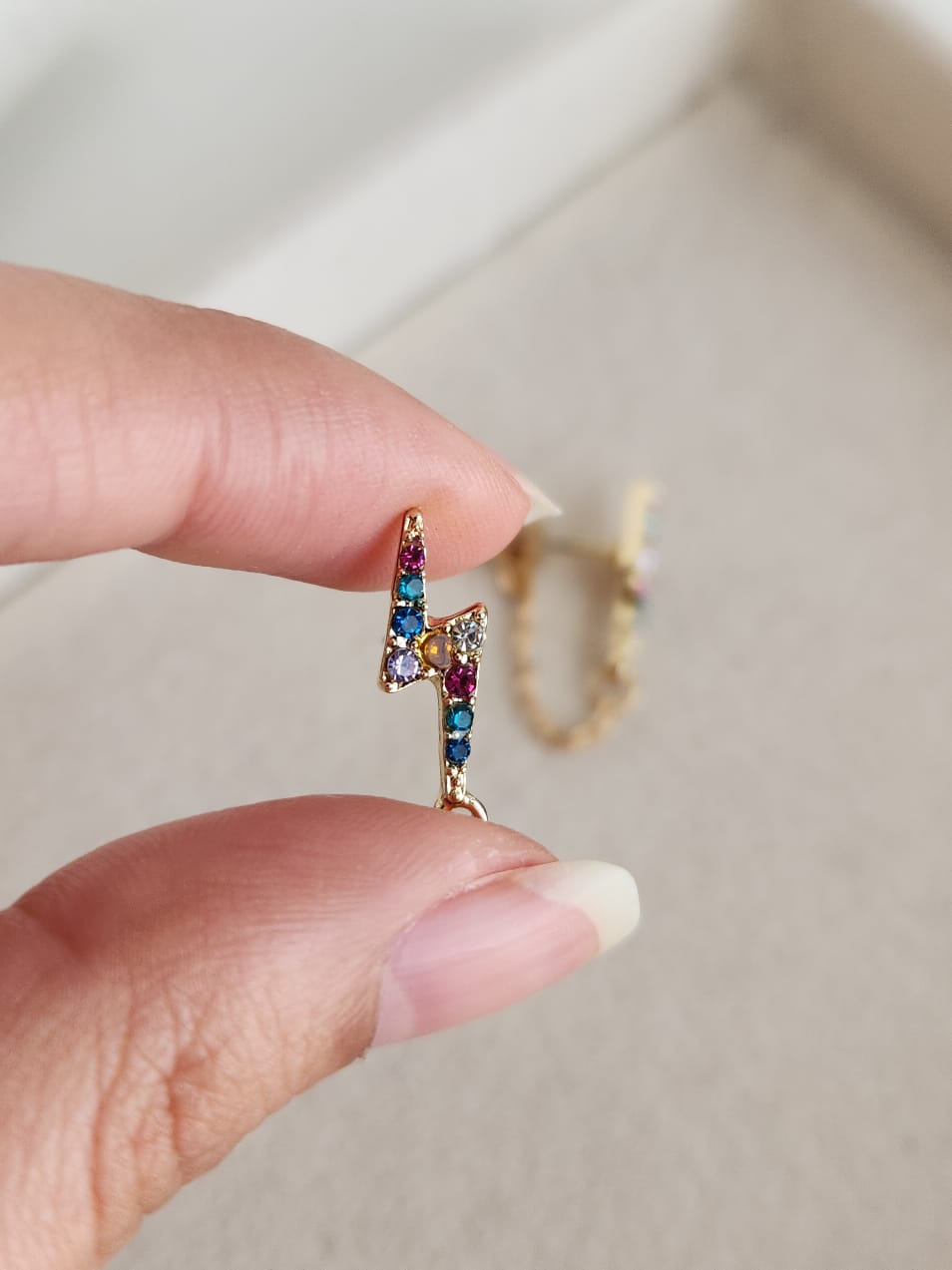 AROS PASANTES CON STRASS DE COLORES Y CADENA