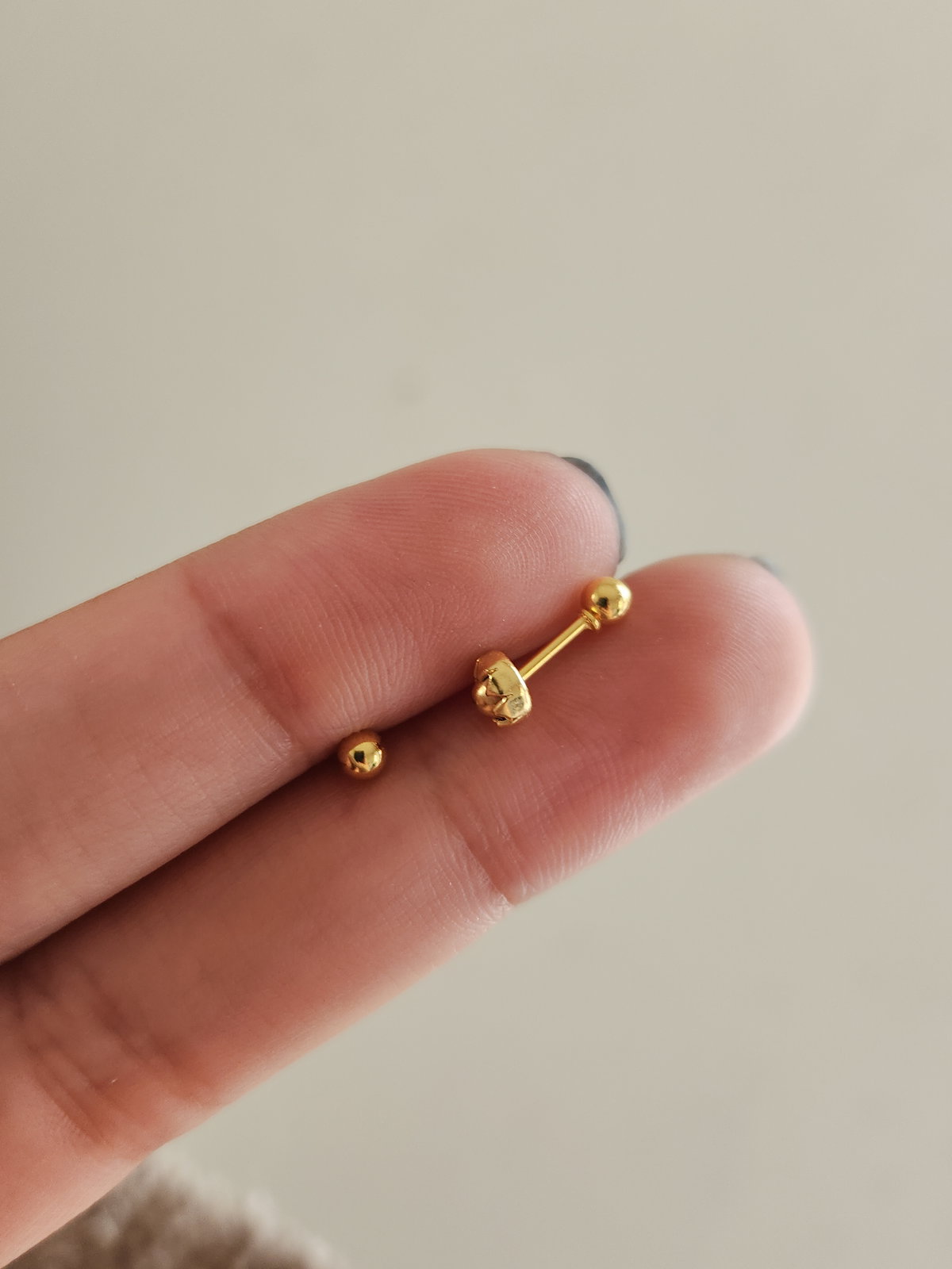 La belleza de lo diminuto. Nuestro abridor Micro Ball de 2 mm es la pieza más pequeña y refinada de nuestra colección de básicos. Confeccionado en acero dorado con un pulido de alta precisión, este diseño esférico está pensado para quienes aman la discreción absoluta o buscan el complemento perfecto para armar un ear stack (oreja curada) minimalista y equilibrado.