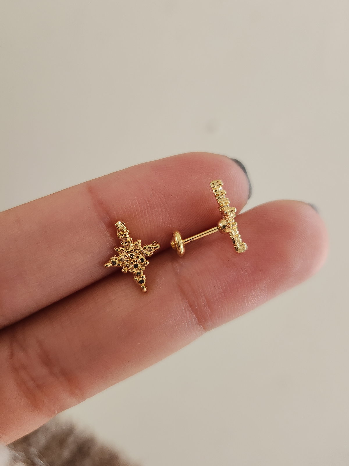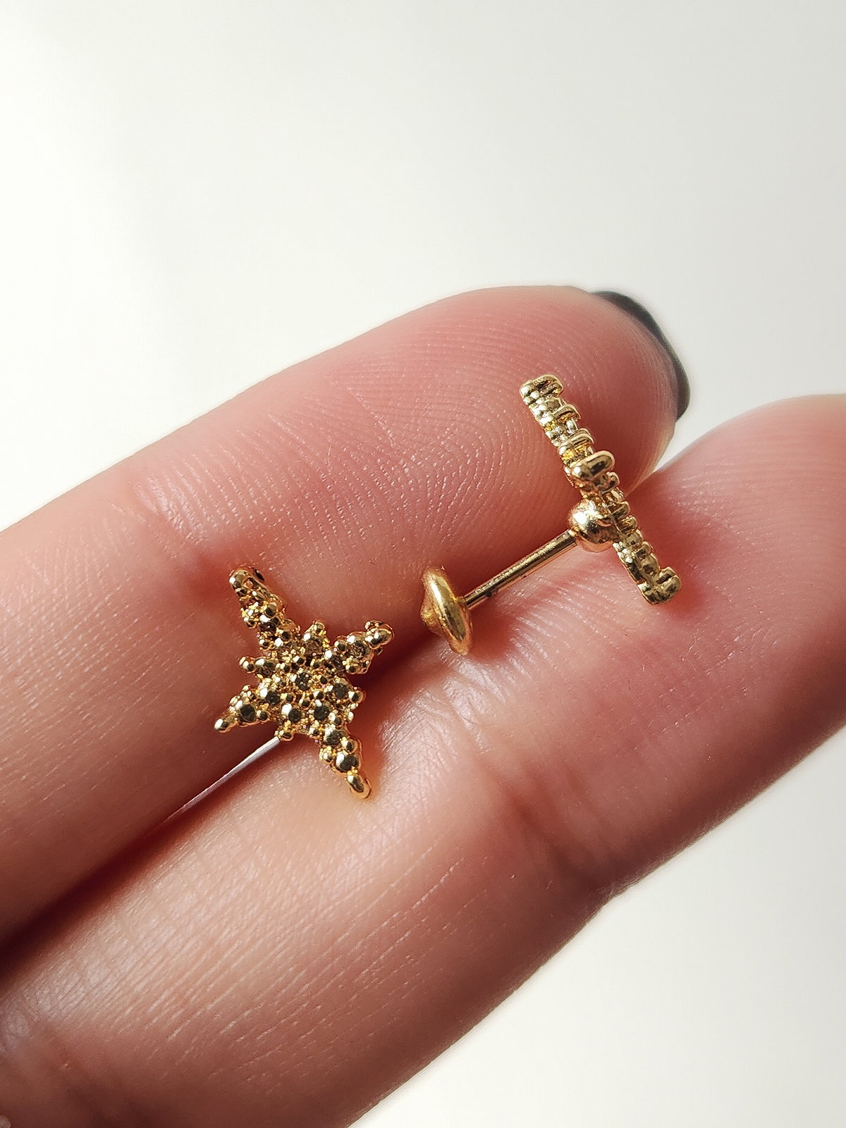 El destello de 12 mm es un imán de miradas. A diferencia de los abridores pequeños, este modelo tiene la presencia de un aro de diseño, pero con la comodidad y seguridad de un abridor clásico. Simboliza la dirección y la inspiración, lo que lo convierte en una pieza con una carga emocional muy fuerte. Al ser de acero dorado, mantiene su brillo intenso y es lo suficientemente liviano para acompañarte todo el día, elevando incluso el outfit más sencillo.