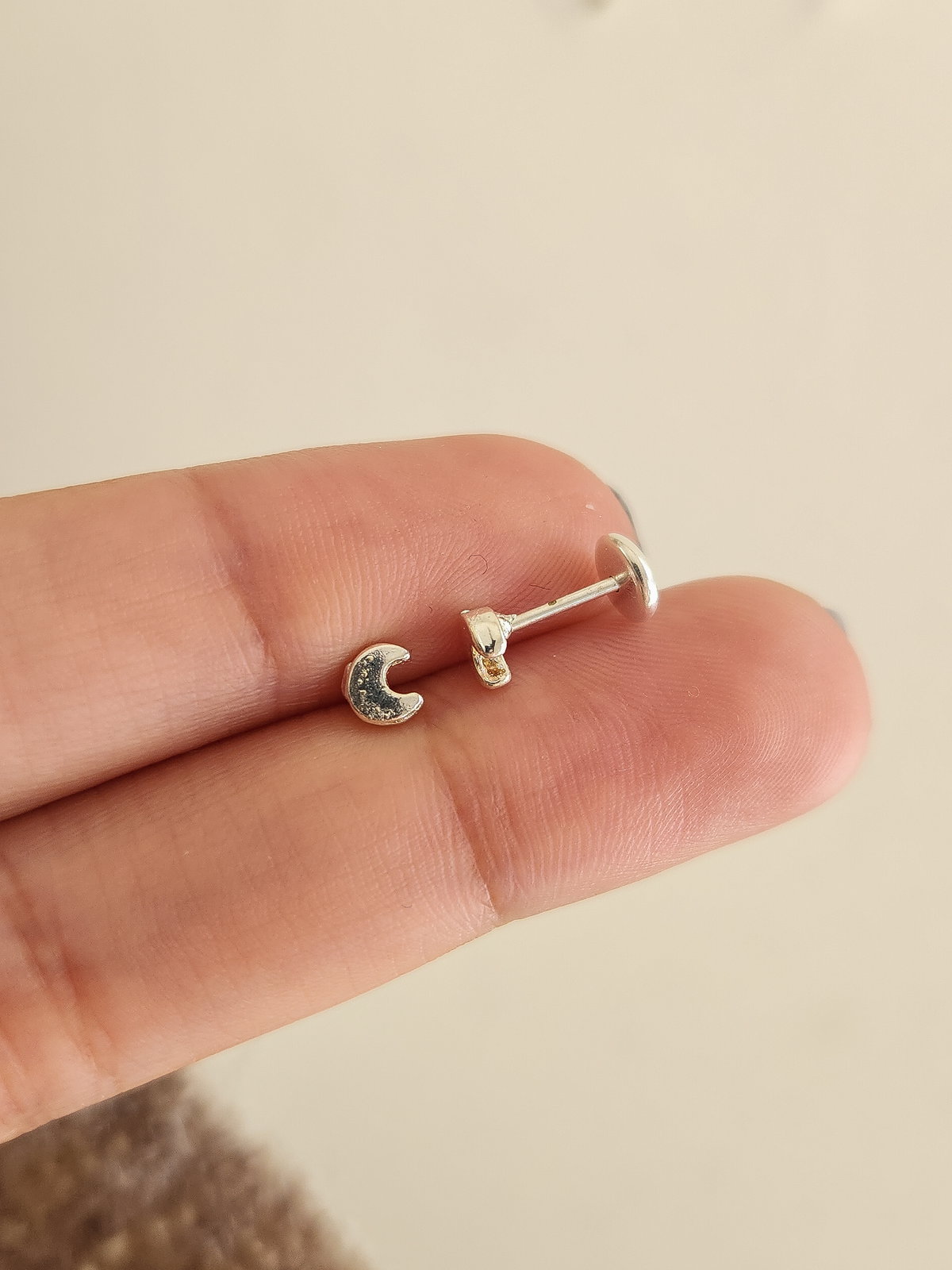 Nuestras Mini Lunas son el accesorio perfecto para quienes buscan un detalle delicado con un toque celestial. Con un diseño de media luna en relieve y un acabado pulido espejo, estas piezas capturan la luz de manera sutil, aportando un brillo mágico a tu rostro.
