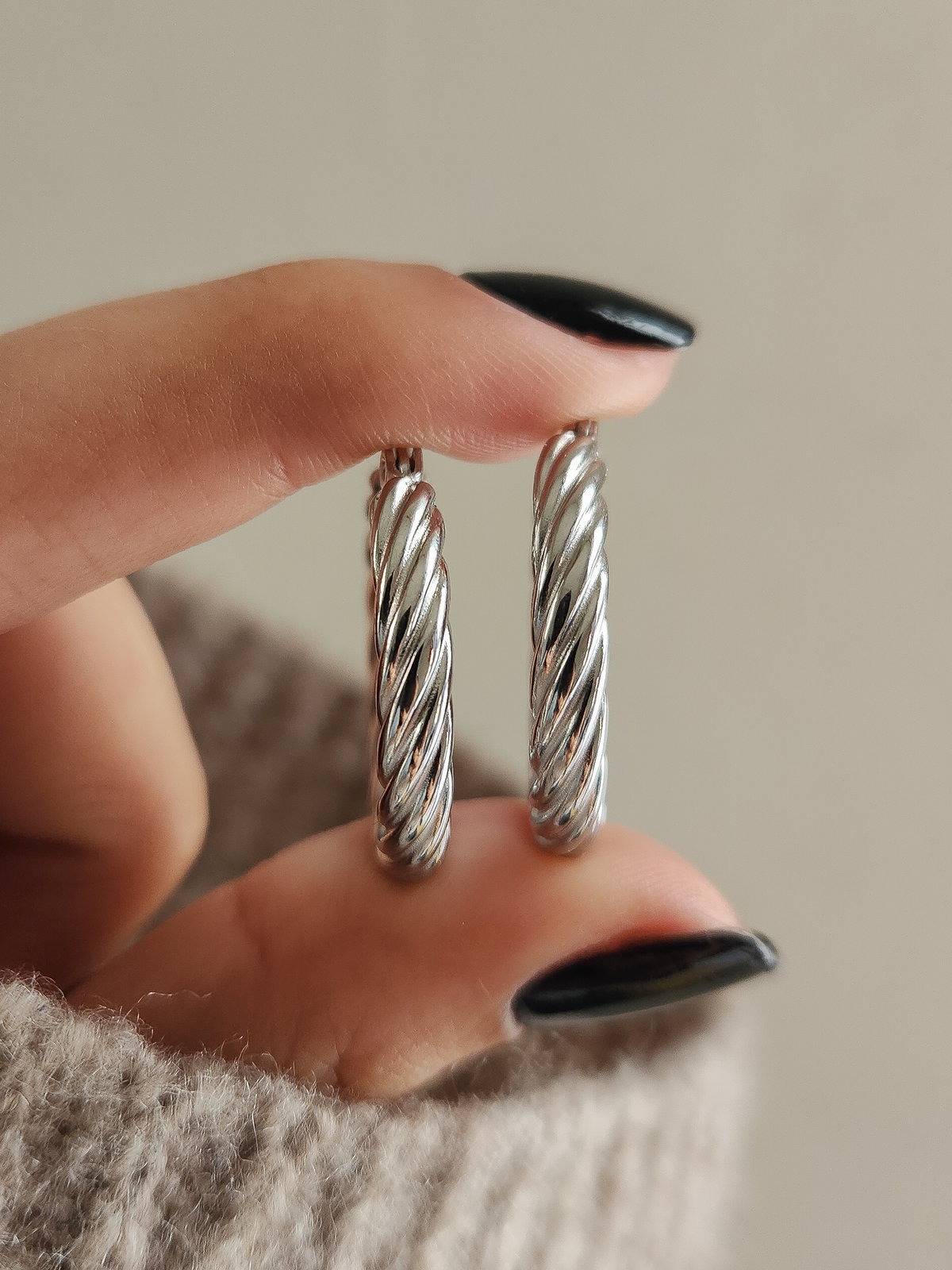 A diferencia de las argollas lisas, el diseño terry captura la luz desde múltiples ángulos, iluminando el rostro de una forma mucho más vibrante. El acero quirúrgico permite que el relieve se mantenga perfecto a pesar del roce, siendo la opción ideal para quienes buscan una joya "todo terreno" que no sacrifique el estilo. Su tamaño de 2.6 cm las convierte en el accesorio definitivo para pasar de un look de oficina a una salida nocturna con solo cambiar el peinado.