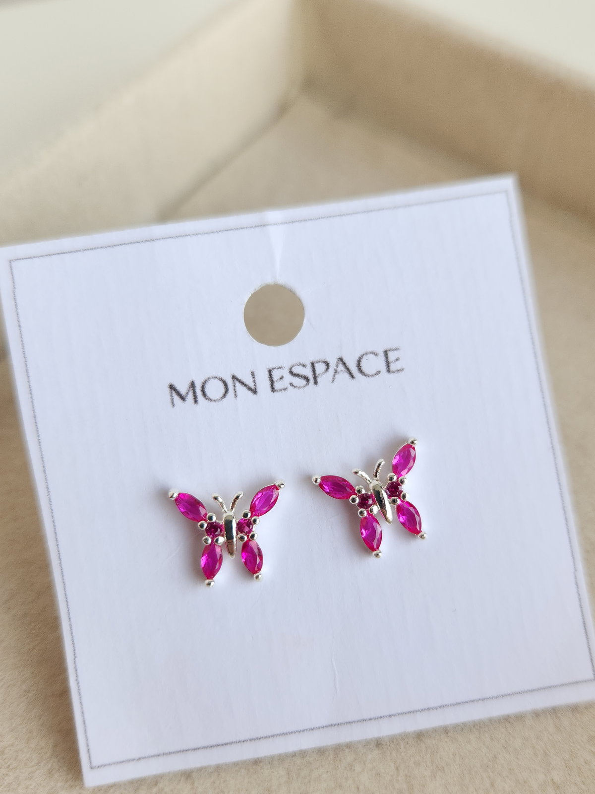 Atrevidos, magnéticos y llenos de vida. Nuestros aros pasantes Butterfly Fucsia son la pieza ideal para quienes no tienen miedo a destacar. Diseñados con una silueta de mariposa en acero blanco, el protagonismo absoluto lo tienen sus cubics color fucsia intenso, facetados para reflejar la luz con una fuerza arrolladora.