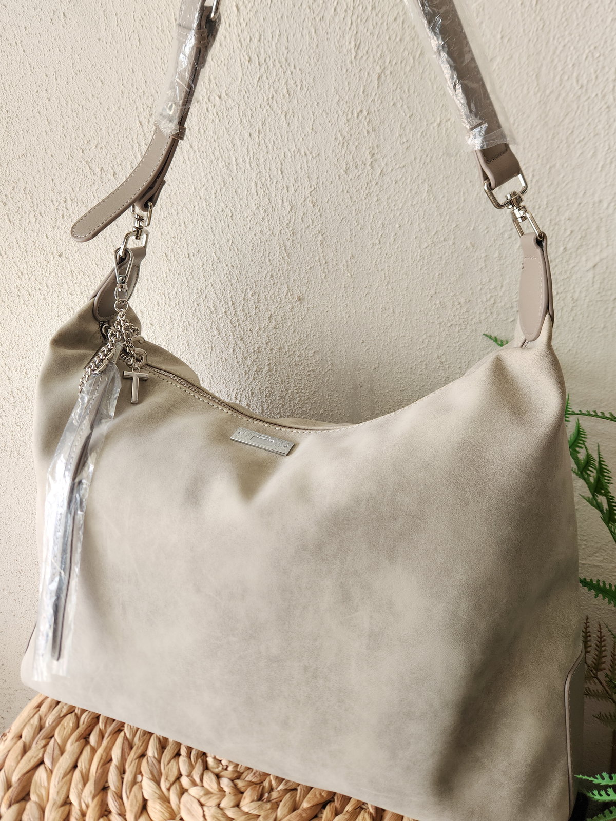 Es el bolso perfecto para el trabajo, viajes cortos o días intensos en la ciudad. Gracias a sus 40 cm de ancho, podés llevar tu notebook, carpetas A4, neceser y mucho más con total comodidad. El color gris es la tendencia absoluta de este 2026, funcionando como un neutro que suaviza cualquier outfit. Además, el llavero incluido le aporta un toque de diseño artesanal que lo hace sentir único.