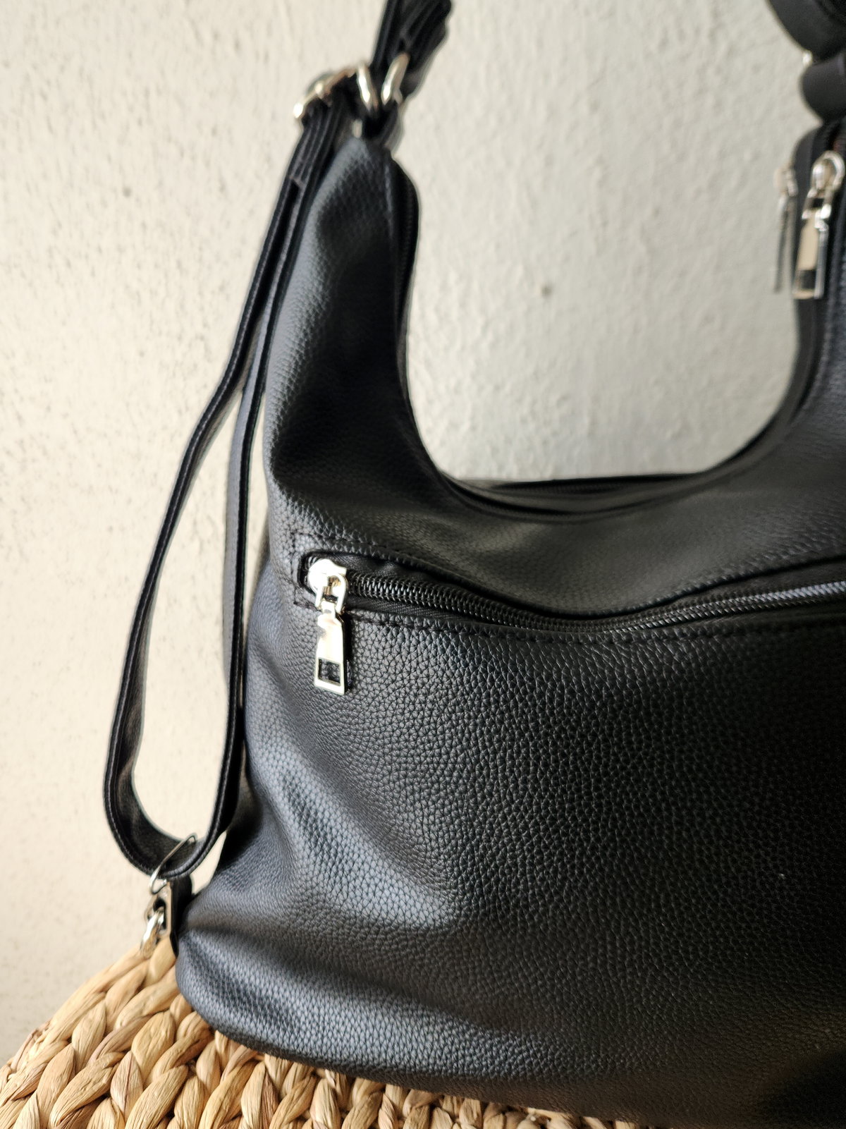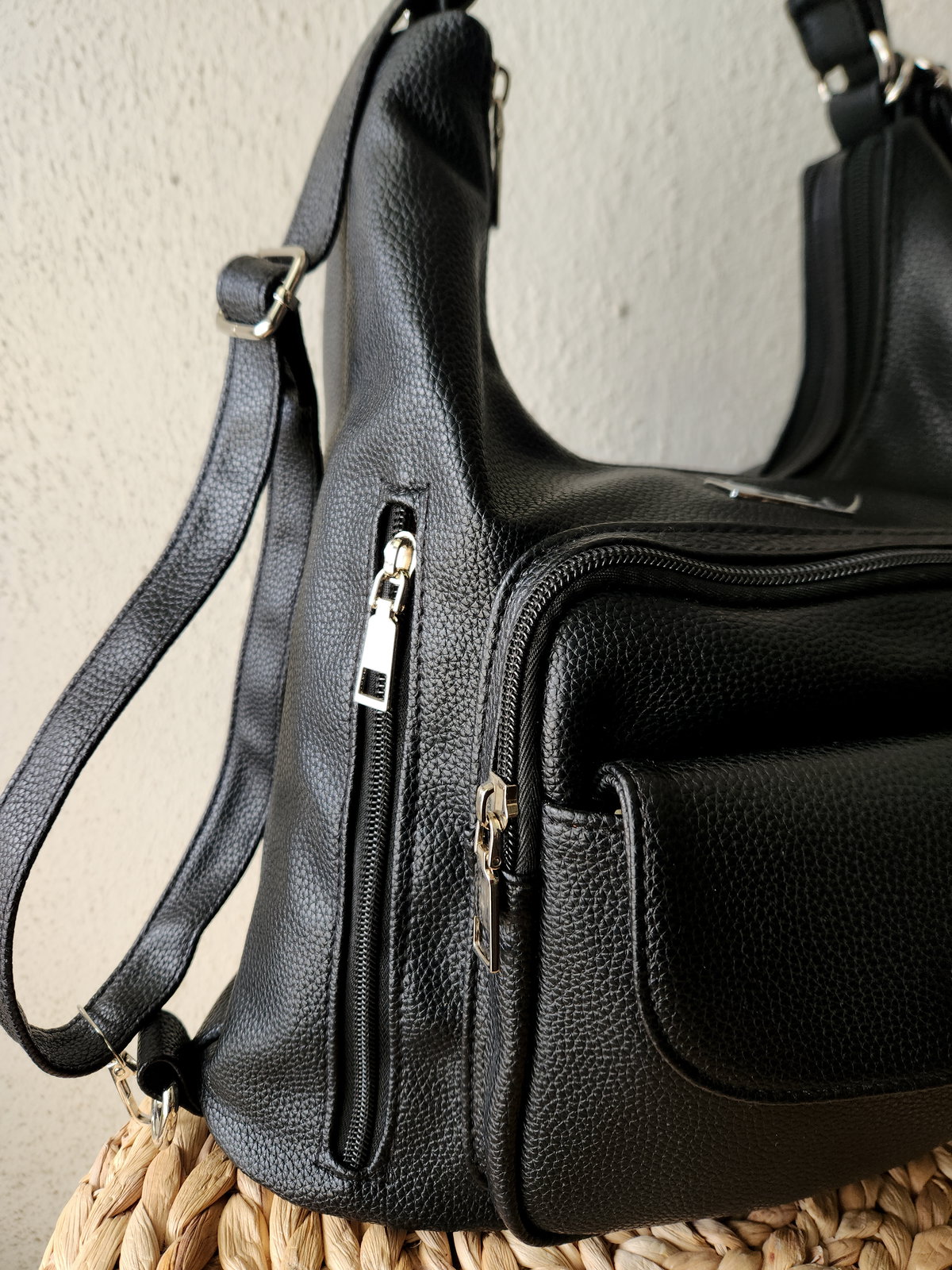 Su capacidad de 13 cm de profundidad permite llevar una tablet, agenda, botella de agua y tus esenciales diarios sin esfuerzo. El sistema de dos compartimentos es ideal para separar, por ejemplo, el mundo laboral (carpetas/notebook pequeña) del personal (billetera/maquillaje). Es una pieza que "evoluciona" con vos: cartera de mañana, mochila de tarde. Los herrajes plateados combinan a la perfección con tus conjuntos de acero dorado o plateado, manteniendo una estética sobria y profesional.