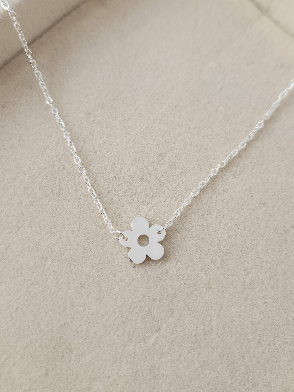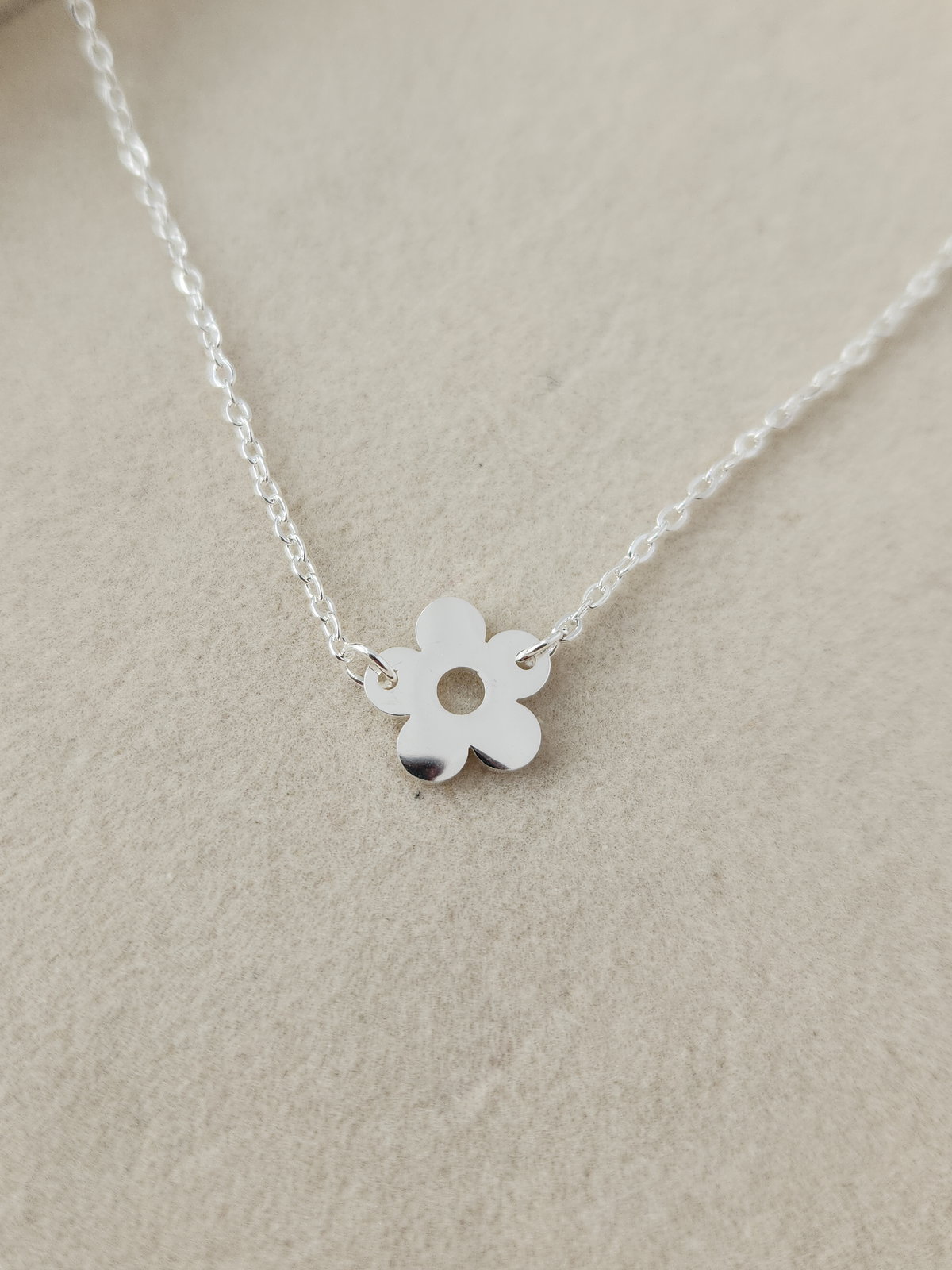 COLLAR DE ACERO BLANCO CON DIJE DE FLOR. DISEÑADO PARA QUEDAR DELICADAMENTE POSICIONADO SOBRE LA BACE DE TU CUELLO. UN INFALTABLE EN TU COLECCIÓN