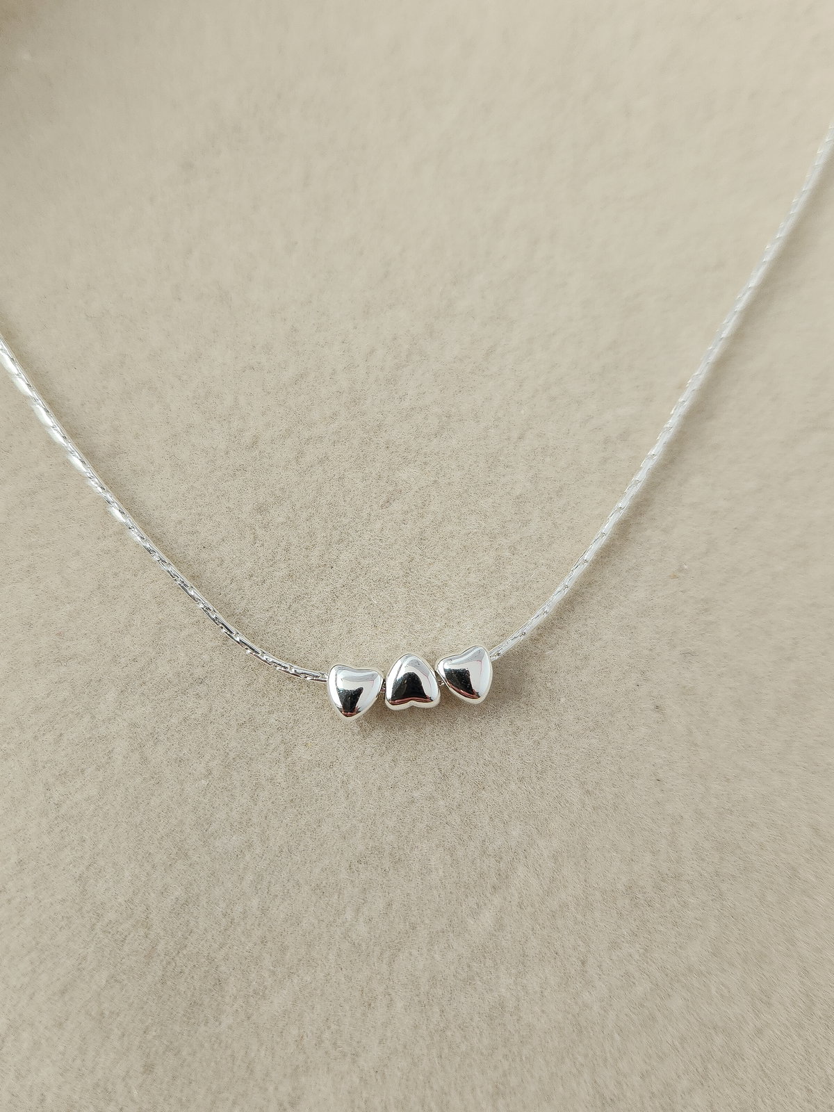 Sumá volumen y delicadeza a tu estilo con nuestro collar. Esta pieza destaca por sus tres mini corazones inflados que actúan como dijes pasantes. Su diseño minimalista y en relieve aporta una estética "puffy" que es el último grito en la moda de accesorios.