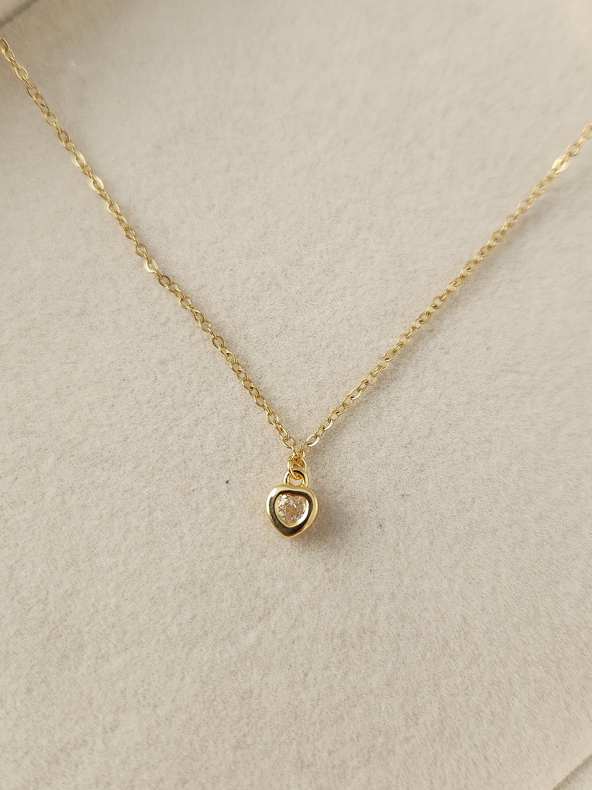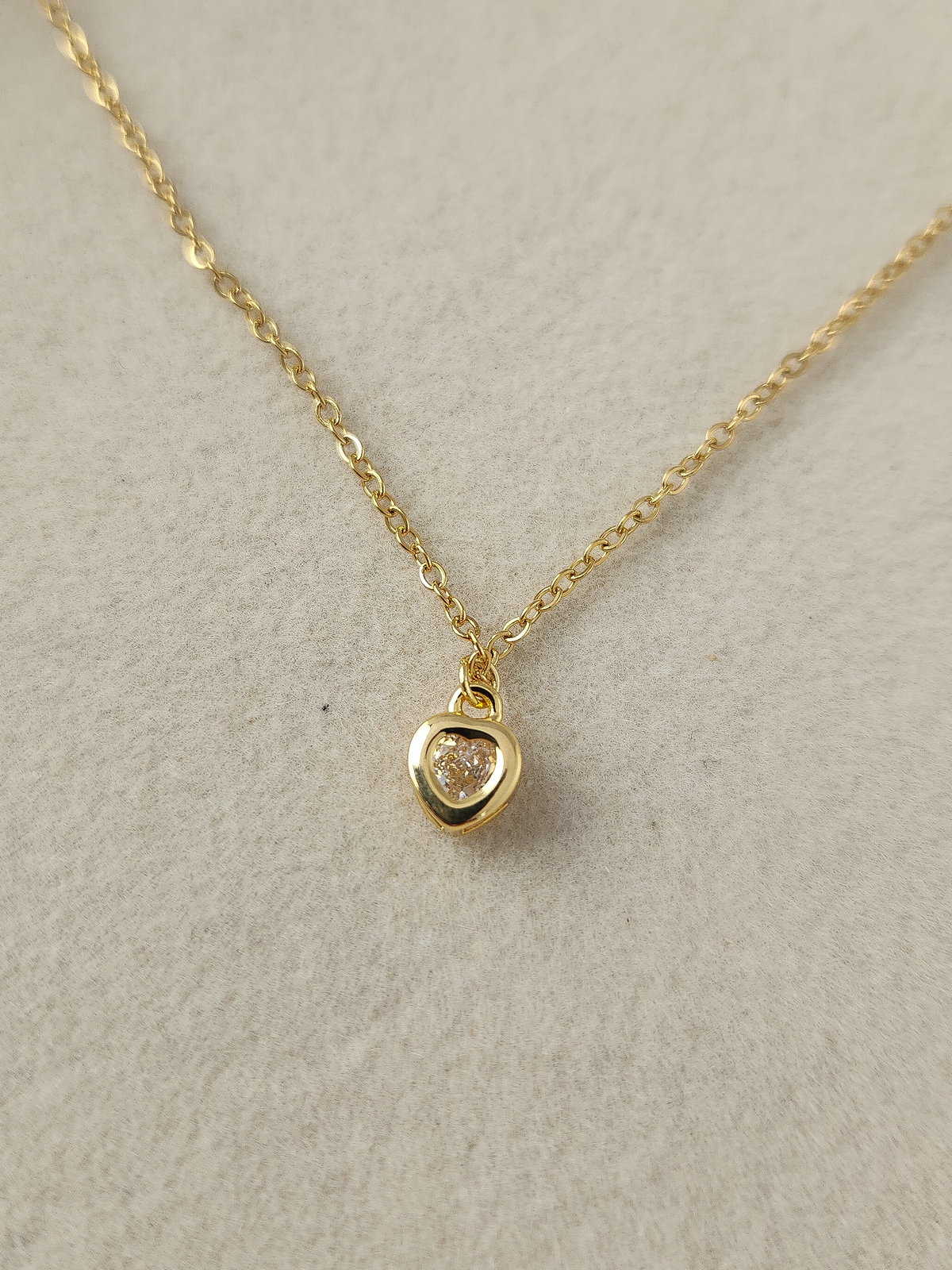 Iluminá tu estilo con la calidez del collar Golden Heart Susano. Esta pieza es la combinación perfecta entre el minimalismo y el lujo. Presenta un deslumbrante Cubic Zirconia en forma de corazón, sostenido por un engarce estilo Susano que permite que la luz atraviese la piedra desde todos los ángulos, maximizando su brillo natural.