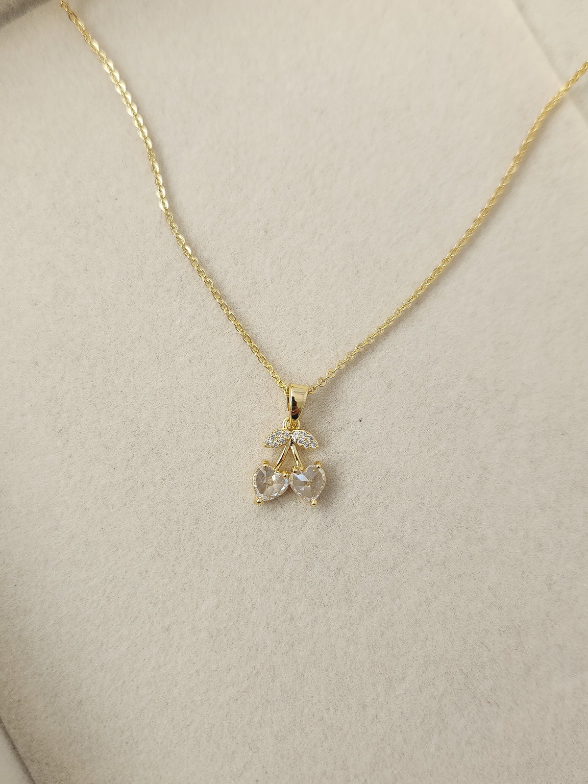 Dije: Doble cereza con piedras Cubic de corte corazón (extra brillo).