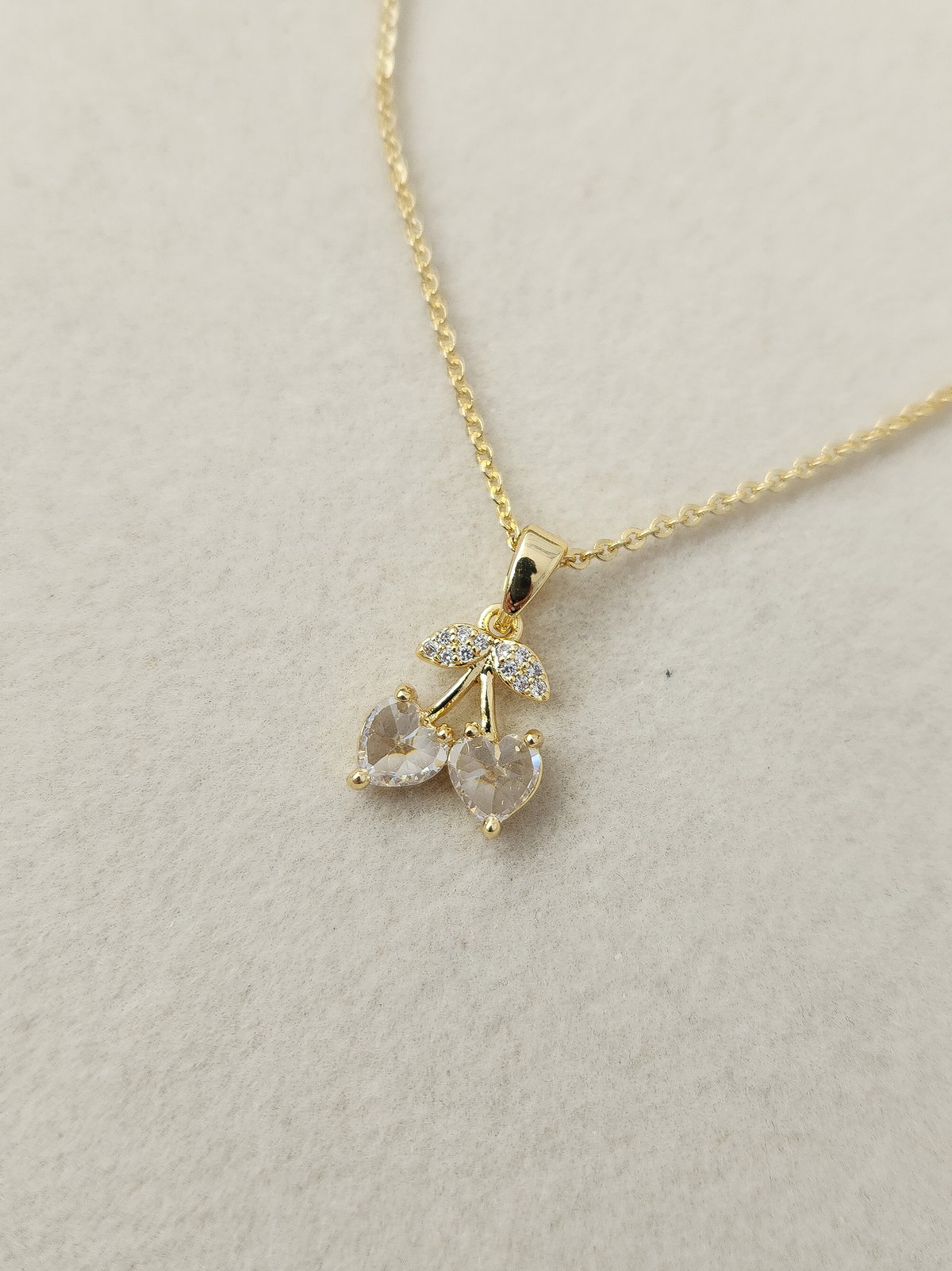 Llevá la tendencia de las cerezas a su versión más lujosa y sofisticada. Nuestro collar Cherry Luxury está elaborado en bronce pulido, logrando un tono dorado vintage único. El diseño presenta dos cerezas formadas por imponentes Cubic Zirconia en forma de corazón, coronadas por hojas recubiertas en un pavé de micro-strass que capturan la luz desde cualquier ángulo.