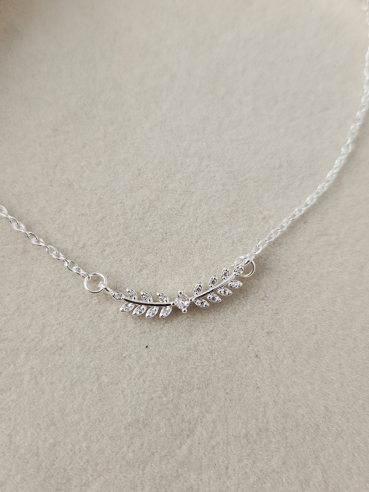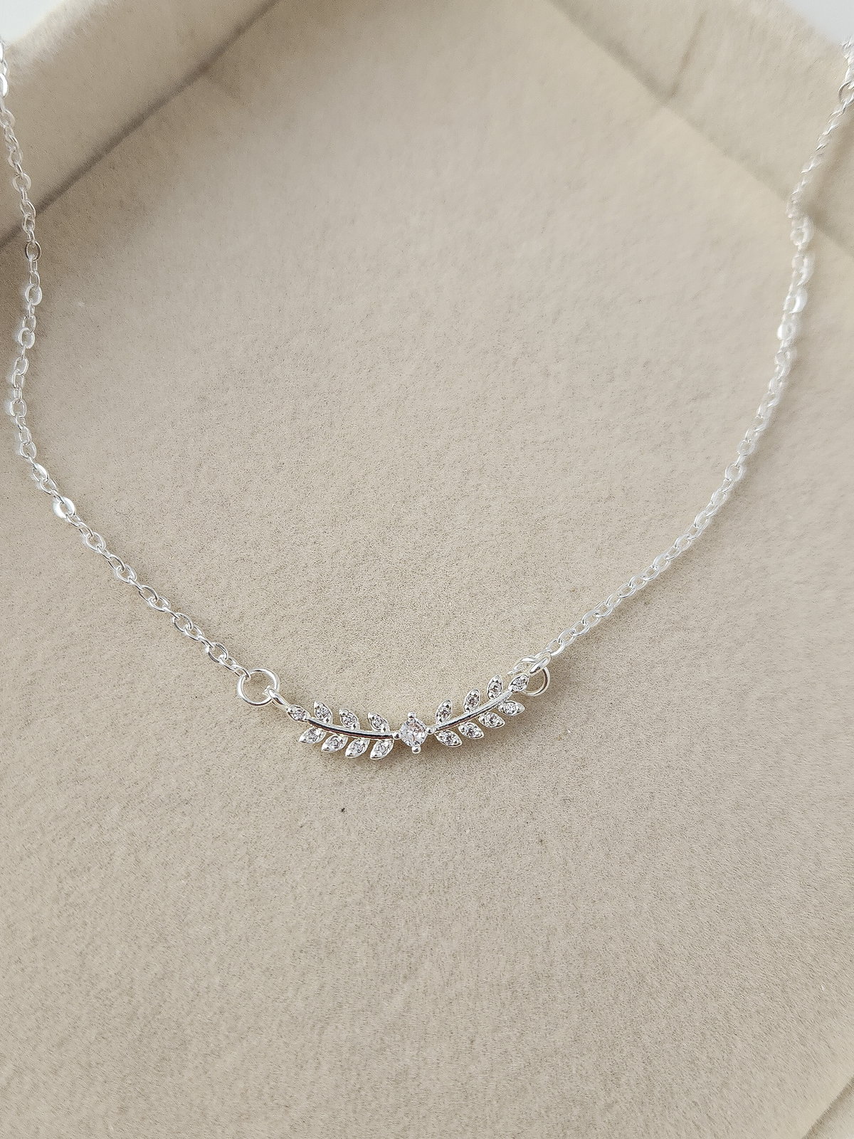Conectá con tu esencia con nuestro collar Nature Glow. Este diseño exclusivo presenta dos delicadas hojas entrelazadas en acero blanco, con sus nervaduras sutilmente decoradas con brillantes strass. En el centro de la unión, un mini Cubic Zirconia aporta un punto de luz sutil que corona esta pieza inspirada en la naturaleza.