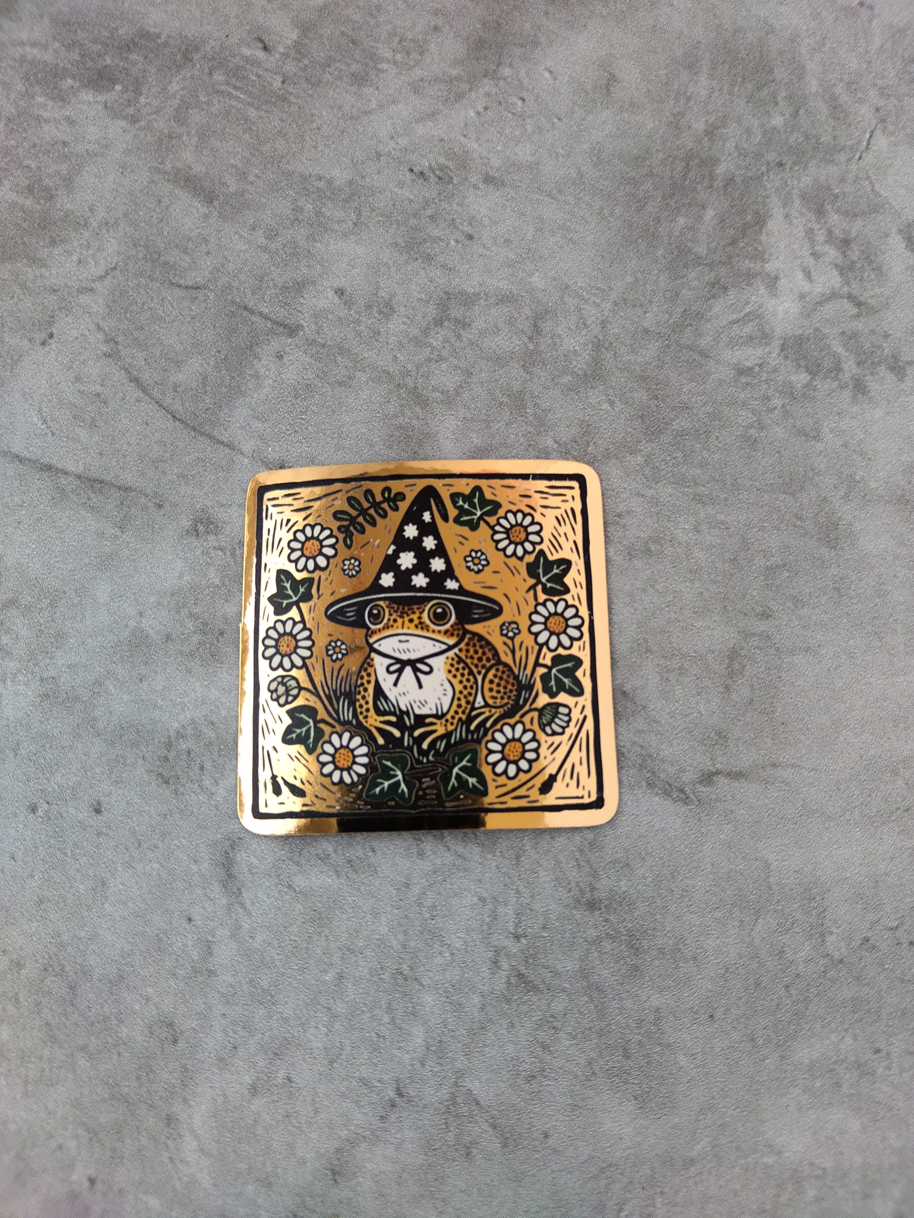 Sticker vinilo dorado resistente al agua, al sol y al roce diario. La impresión sectorizada combina acabados mate y brillosos en relieve, generando un efecto visual y táctil único que resalta cada detalle del diseño. Sujeto a tamaño aproximado 5x5 cm