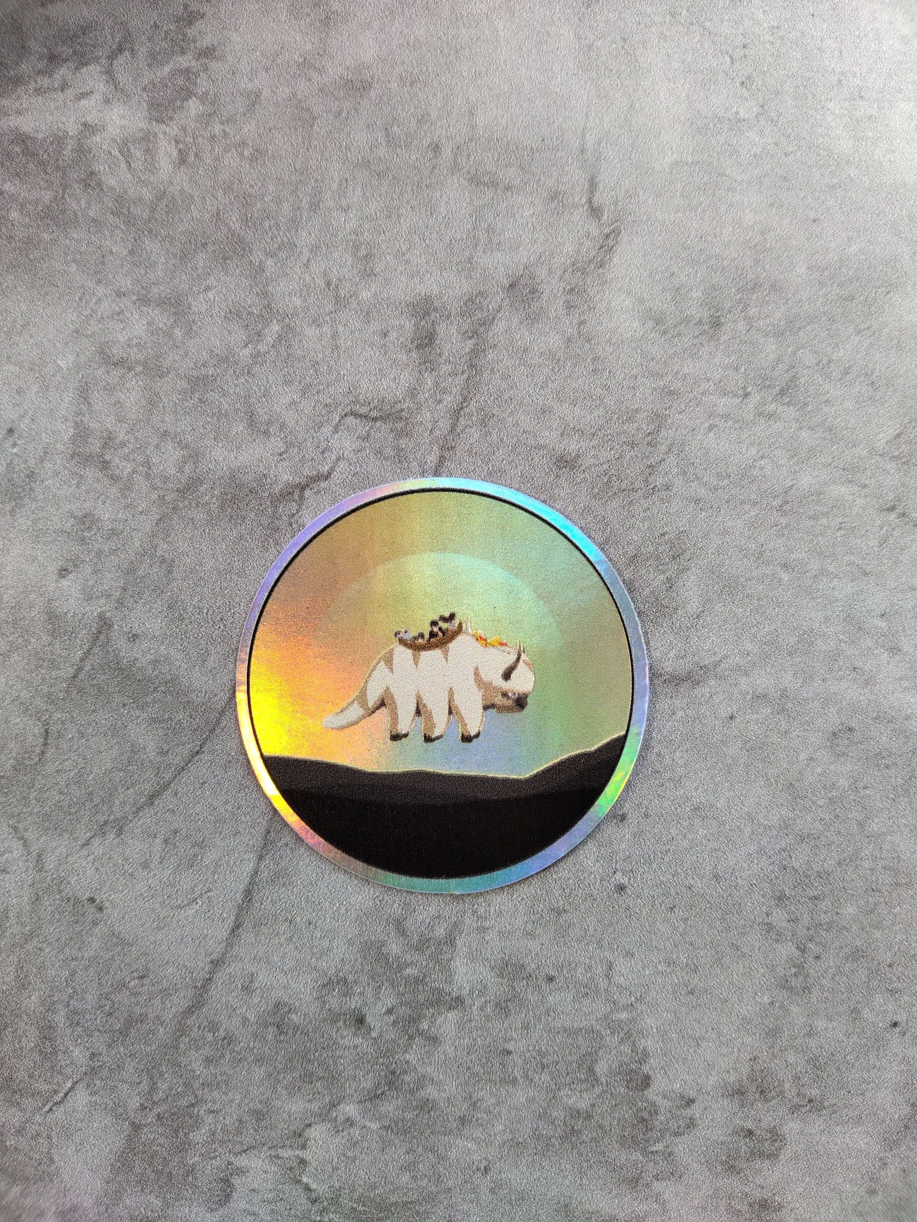 Sticker vinilo holográfico resistente al agua, al sol y al roce diario. La impresión sectorizada combina acabados mate y brillosos en relieve, generando un efecto visual y táctil único que resalta cada detalle del diseño. Sujeto a tamaño aproximado 5x5 cm