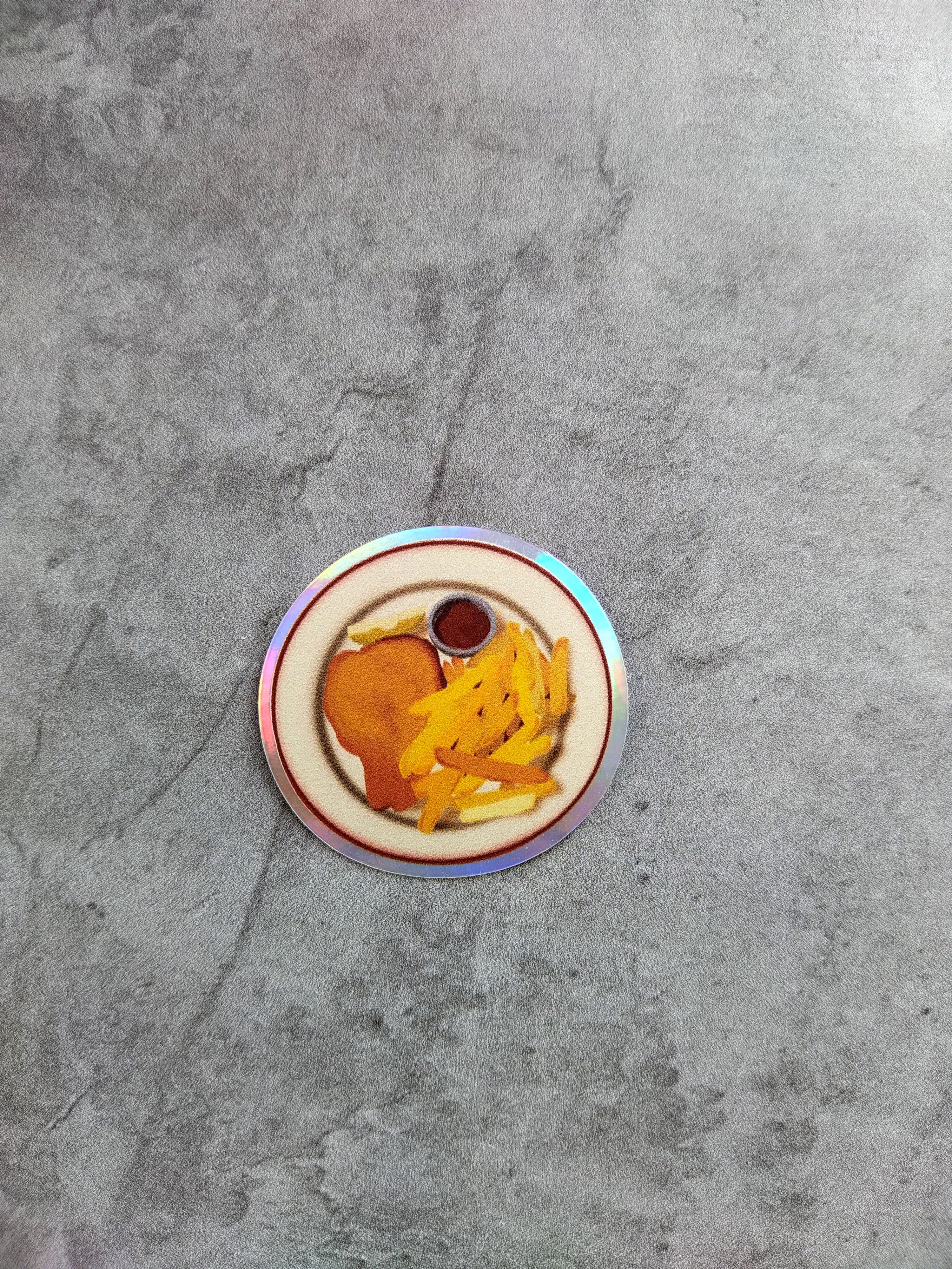 Sticker vinilo holográfico resistente al agua, al sol y al roce diario. La impresión sectorizada combina acabados mate y brillosos en relieve, generando un efecto visual y táctil único que resalta cada detalle del diseño. Sujeto a tamaño aproximado 5x5 cm