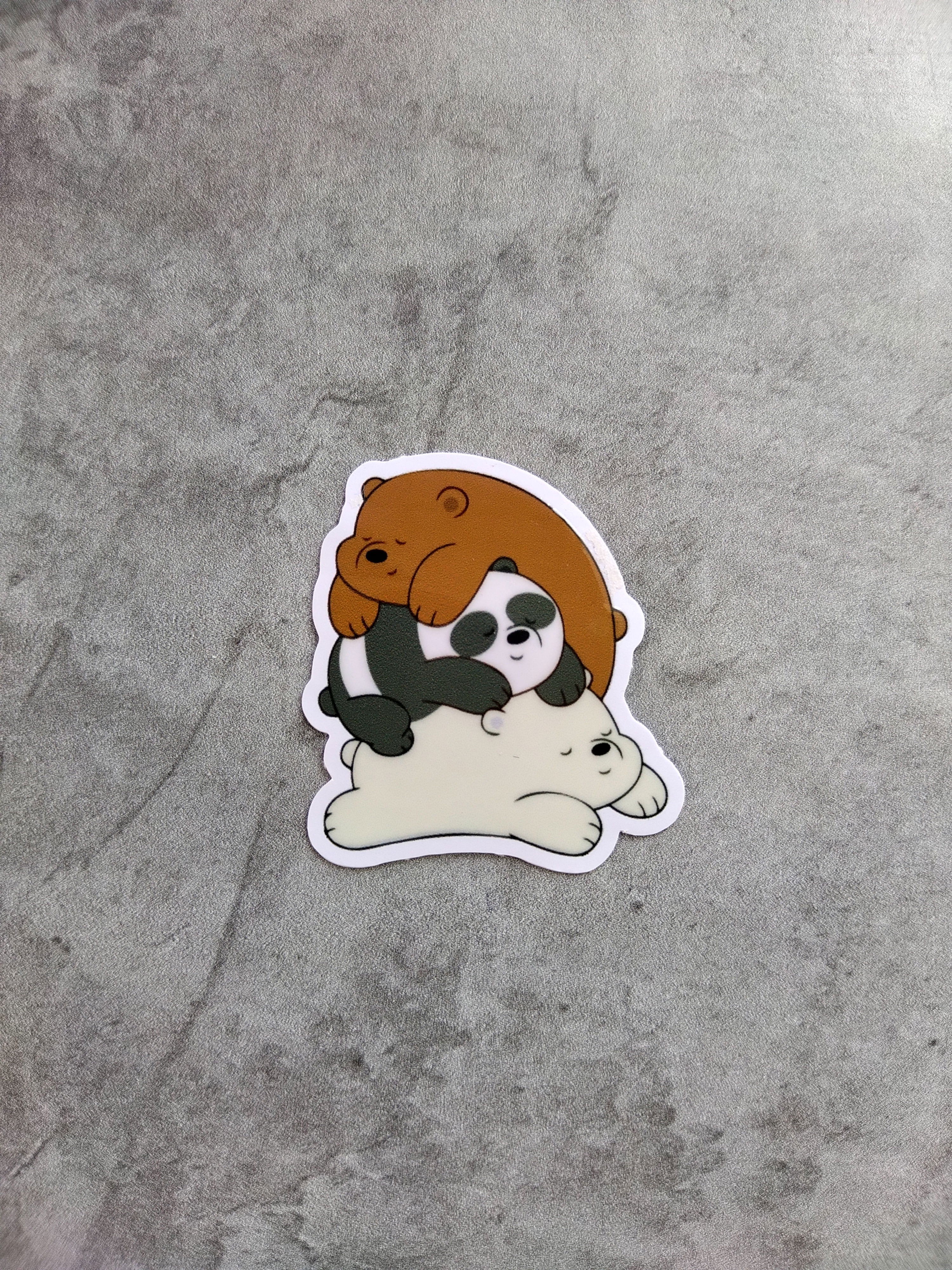 Sticker vinilo blanco resistente al agua, al sol y al roce diario. La impresión sectorizada combina acabados mate y brillosos en relieve, generando un efecto visual y táctil único que resalta cada detalle del diseño. Sujeto a tamaño aproximado 5x5 cm