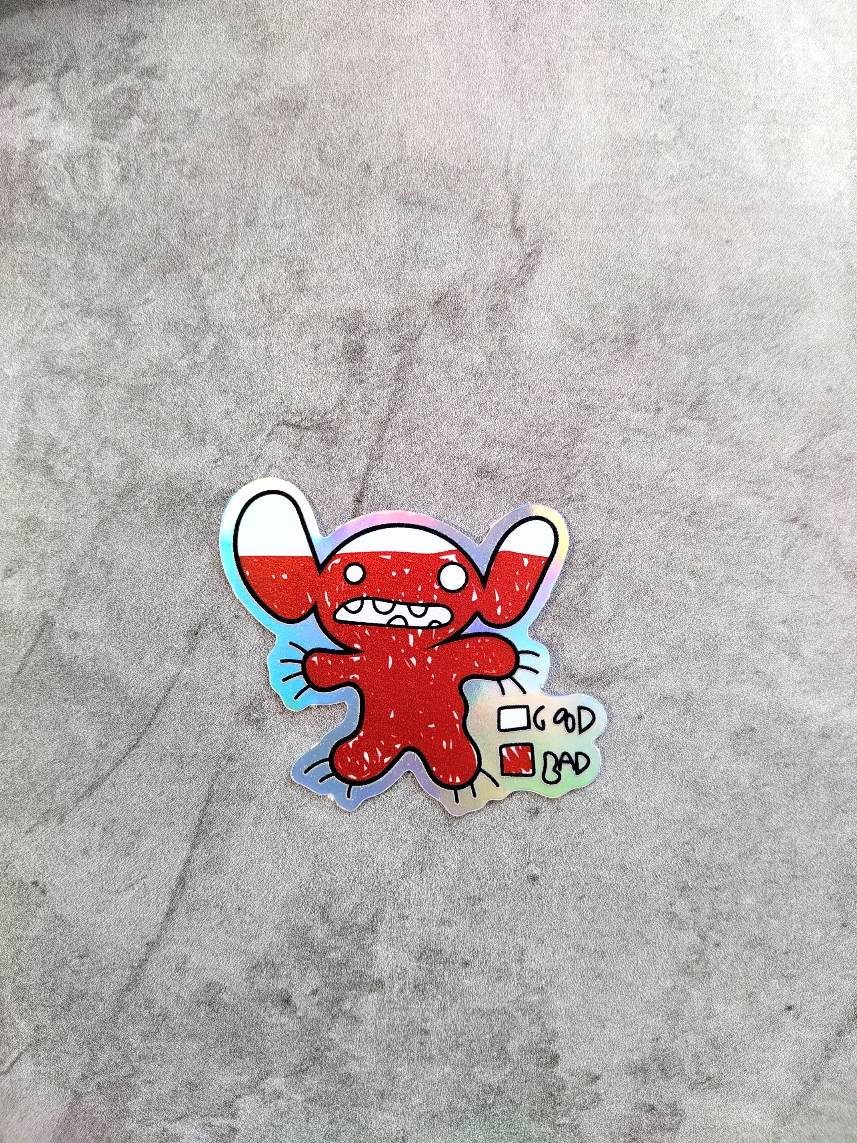 Sticker vinilo holográfico resistente al agua, al sol y al roce diario. La impresión sectorizada combina acabados mate y brillosos en relieve, generando un efecto visual y táctil único que resalta cada detalle del diseño. Sujeto a tamaño aproximado 5x5 cm